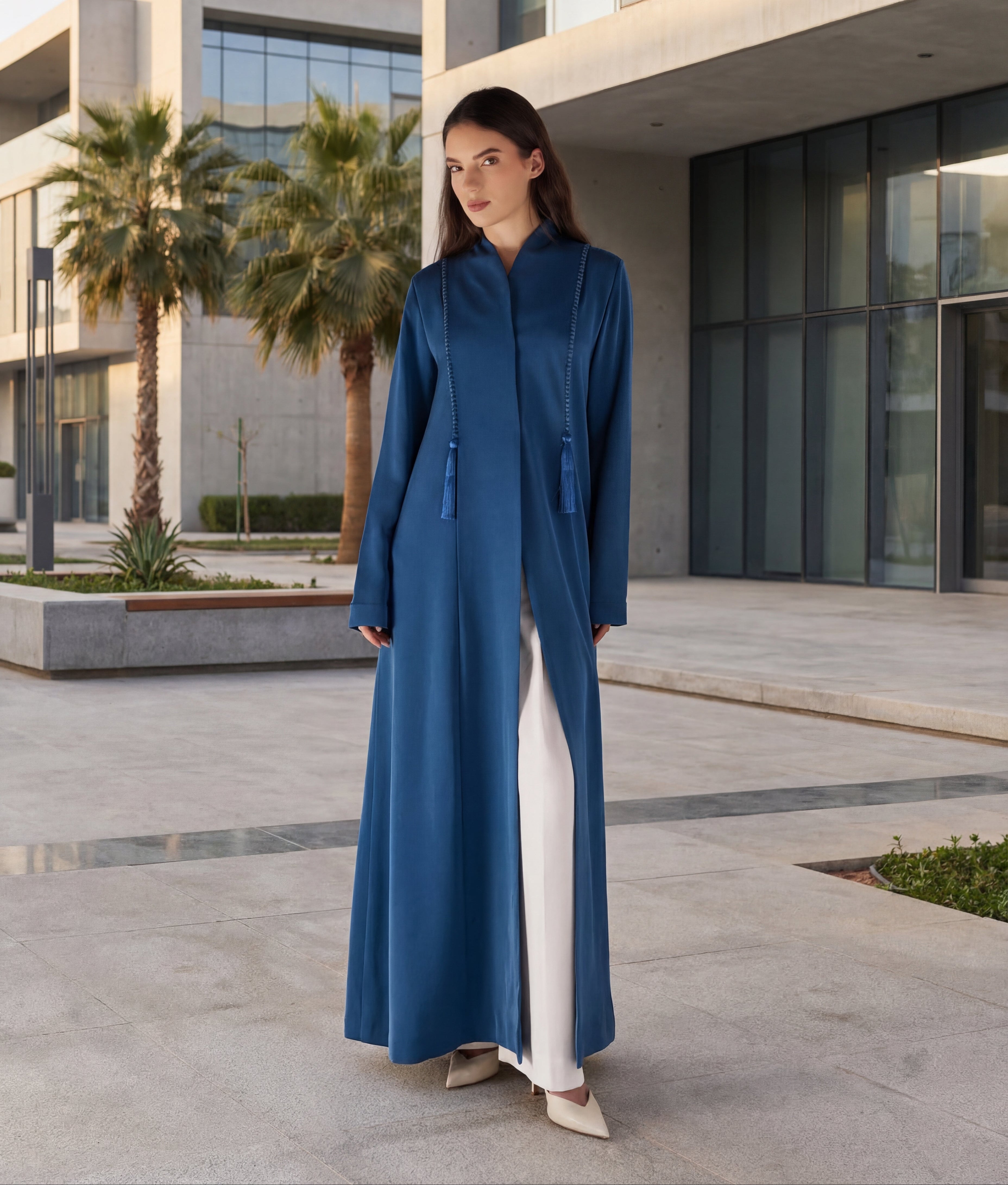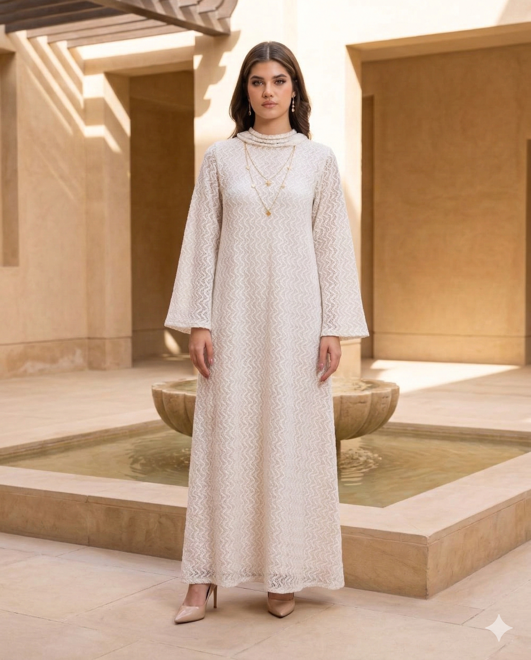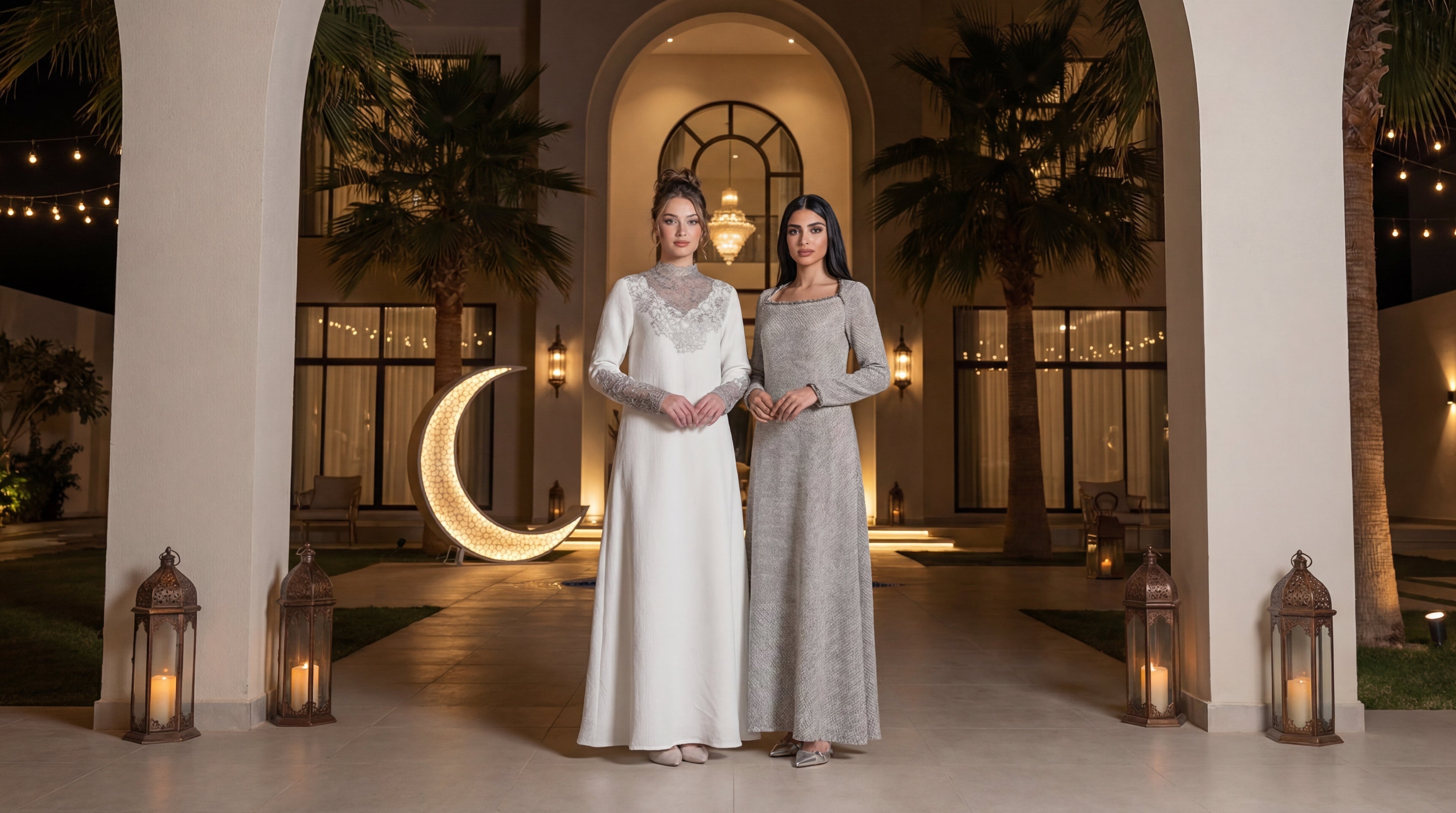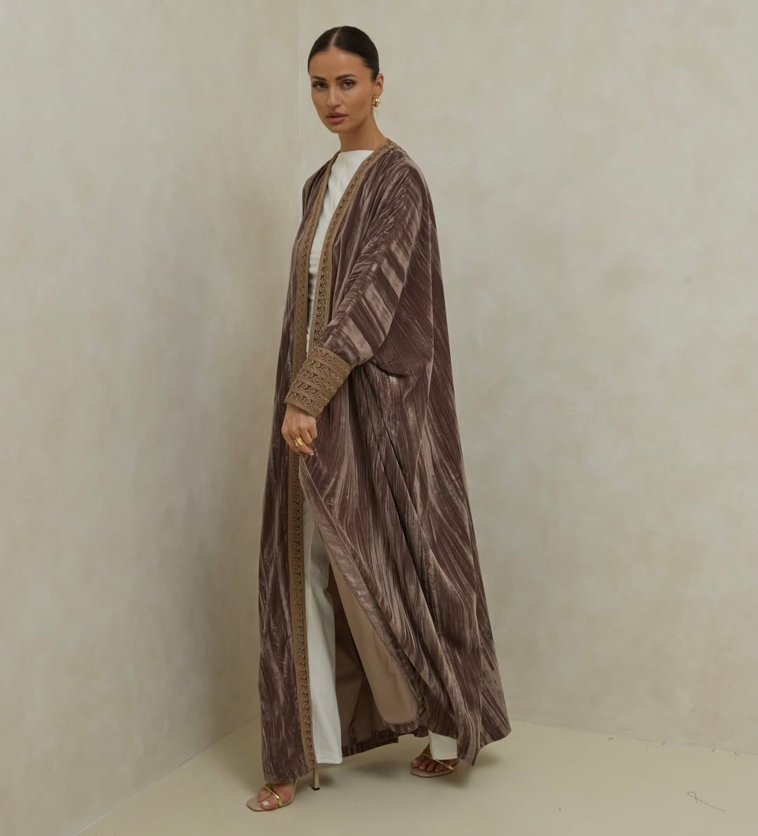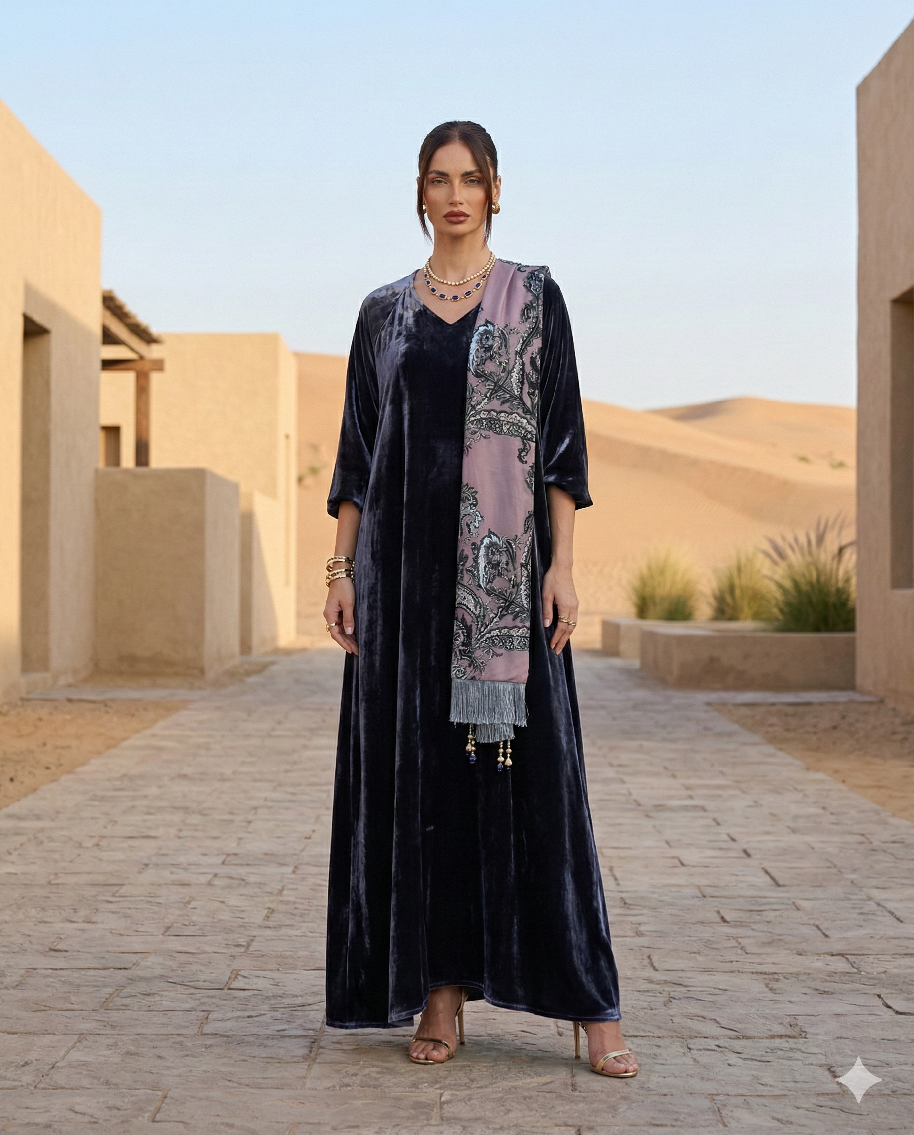 We curate contemporary abayas, kaftans, and statement pieces that blend Saudi heritage, bold color innovation, and architecture‑inspired prints with effortless holiday style.