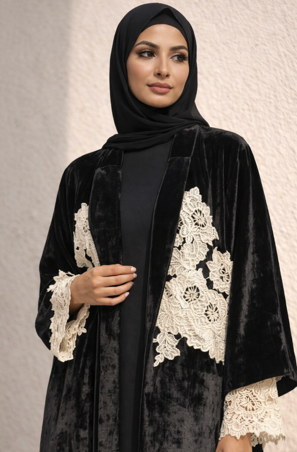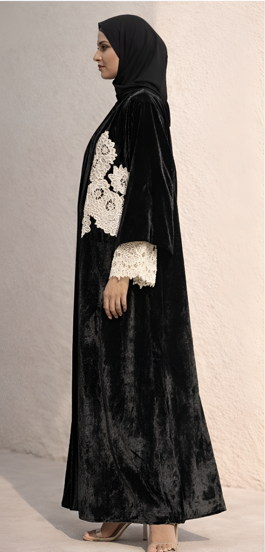 Exude warmth and sophistication with the Black Velvet Abaya. The earthy brown shade complements the luxurious velvet fabric, creating a look that is both classic and contemporary. Ideal for winter evenings, this abaya pairs beautifully with gold or neutral-toned accessories.