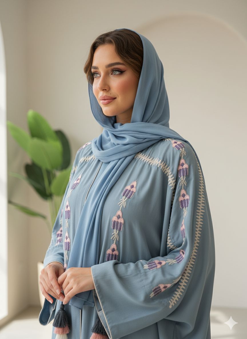 We curate contemporary abayas, kaftans, and statement pieces that blend Saudi heritage, bold color innovation, and architecture‑inspired prints with effortless holiday style.