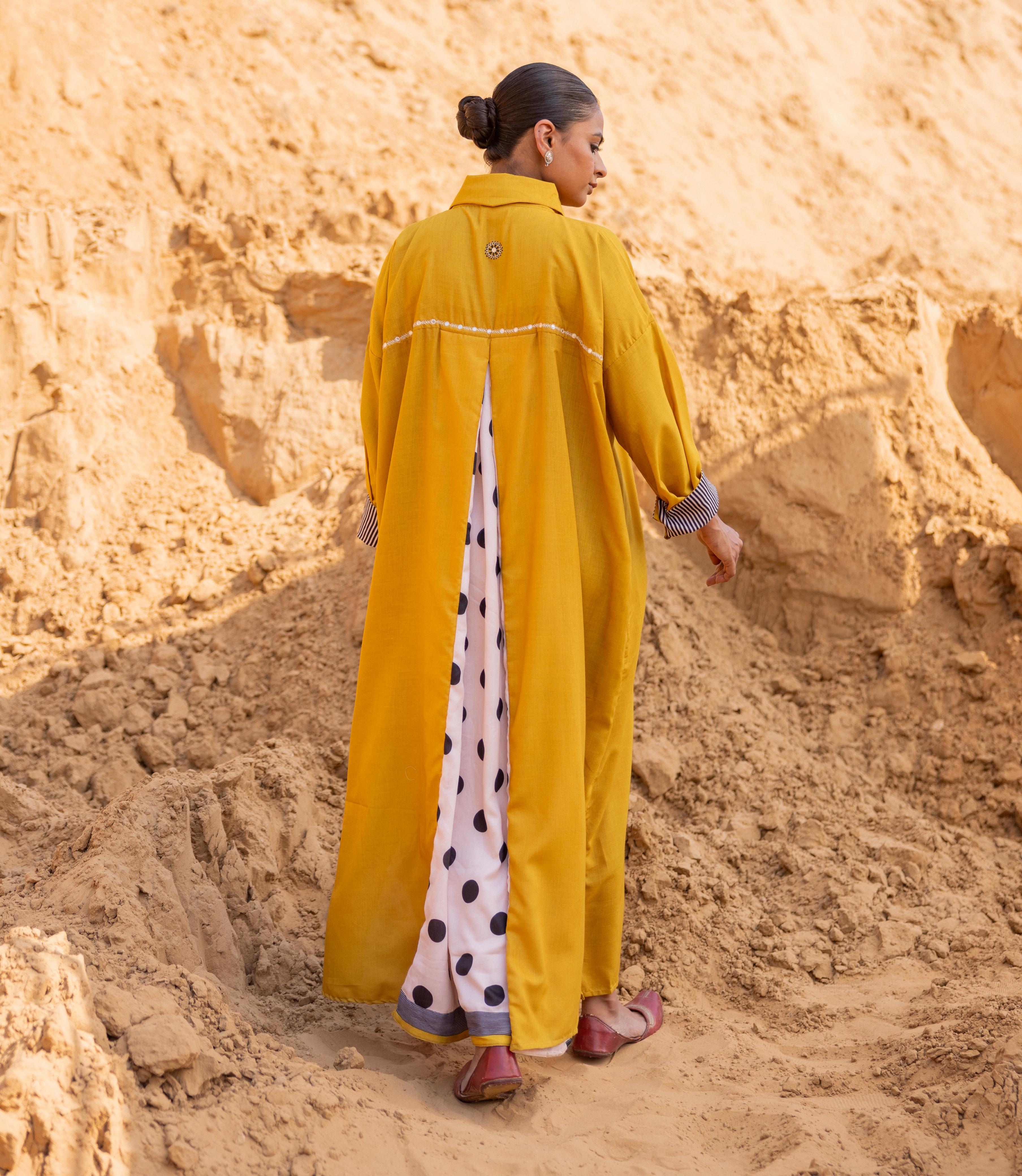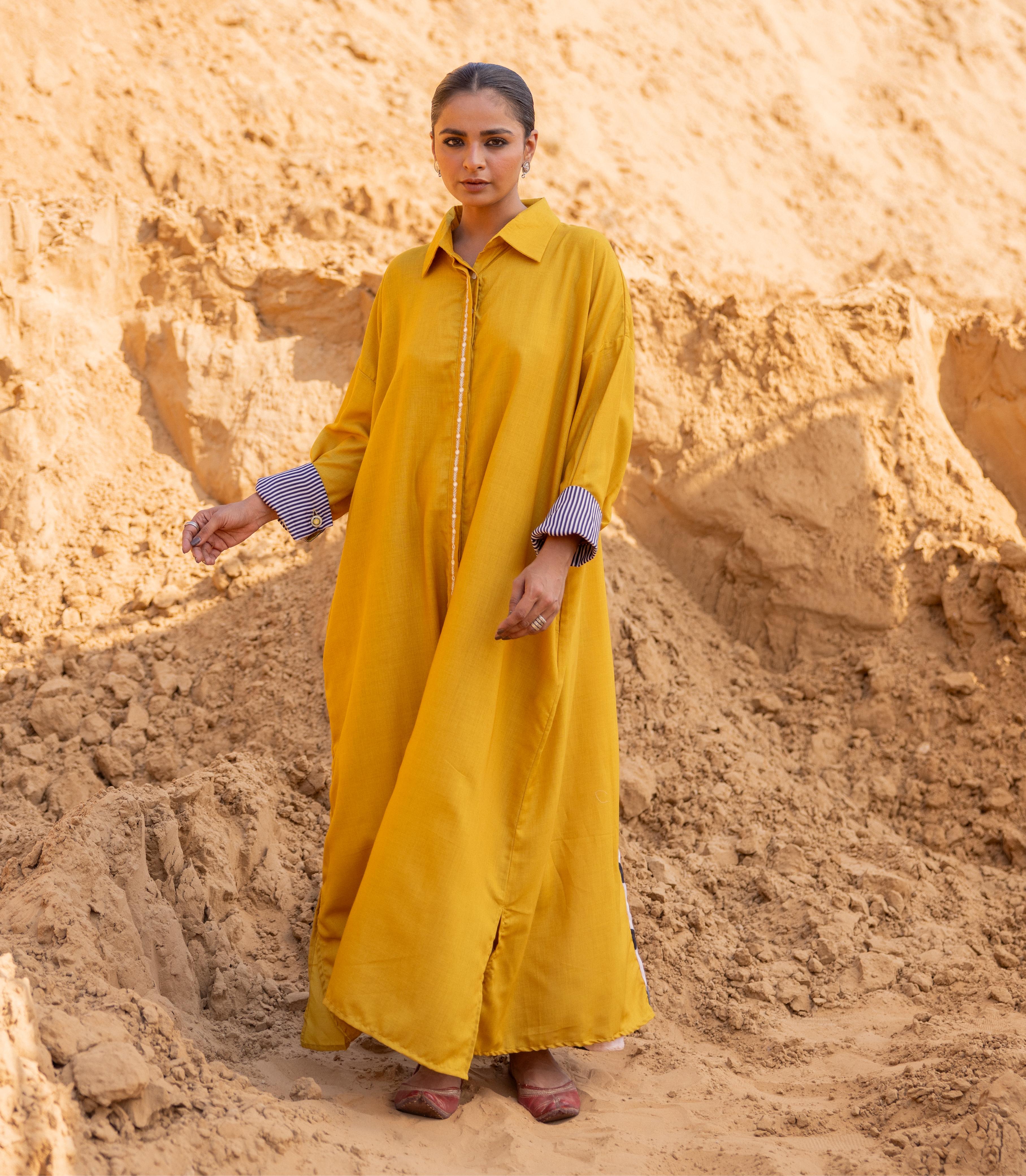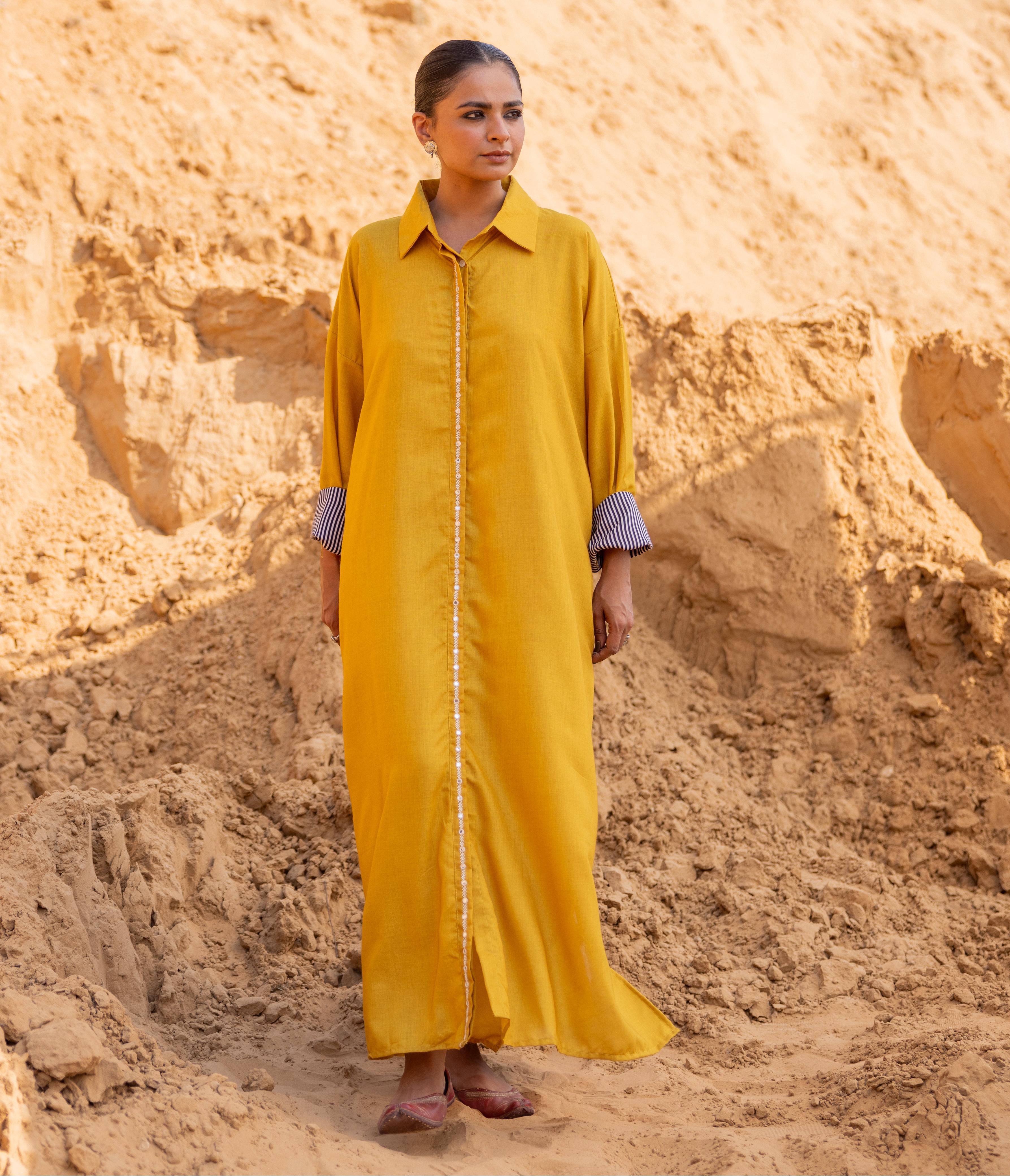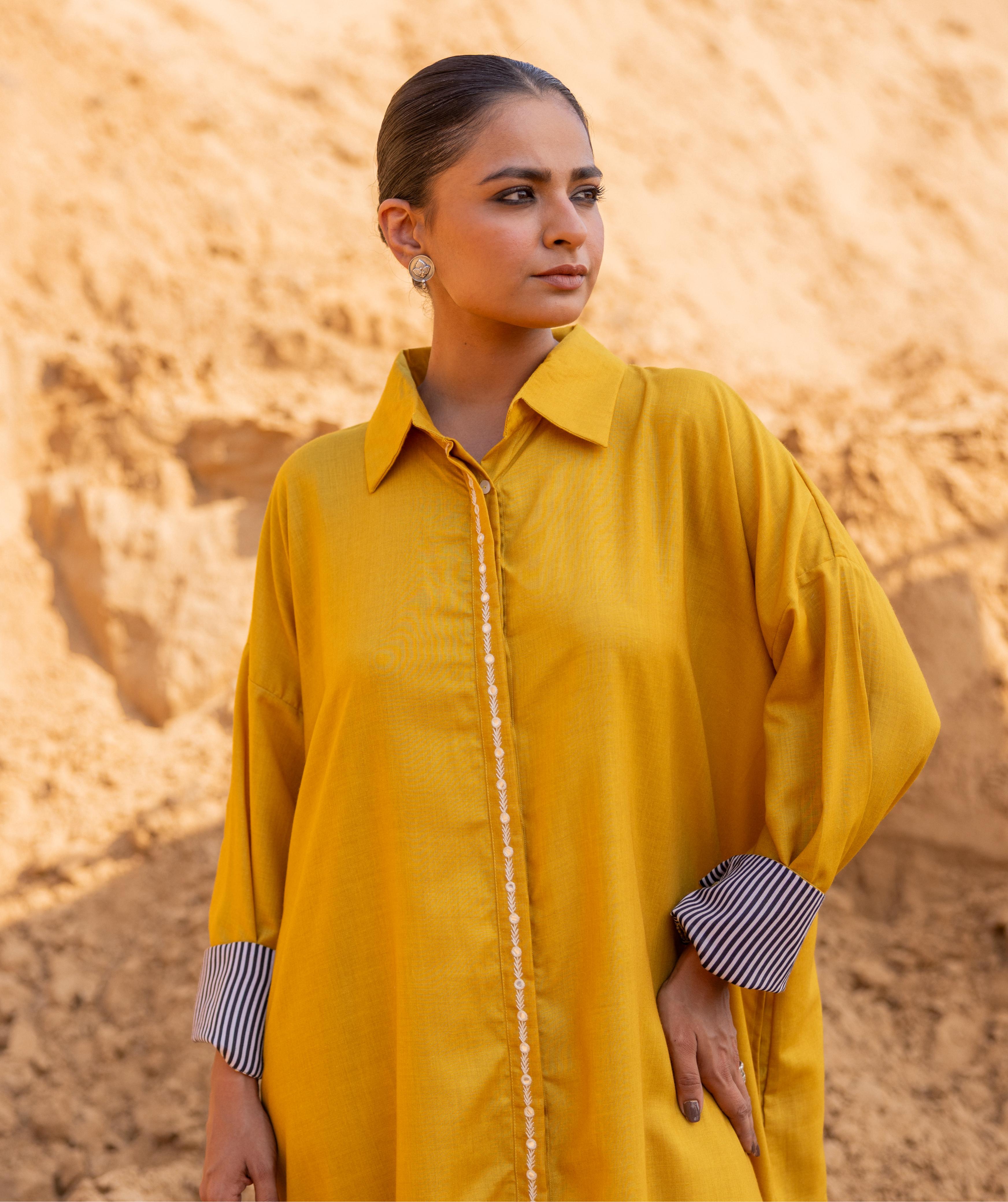A long shirt-style dress designed with a playful back slit that allows effortless movement. Subtle detailing on the cuffs and back yoke adds sophistication, making this piece a perfect balance of elegance and modern style — ideal for versatile, everyday chic.