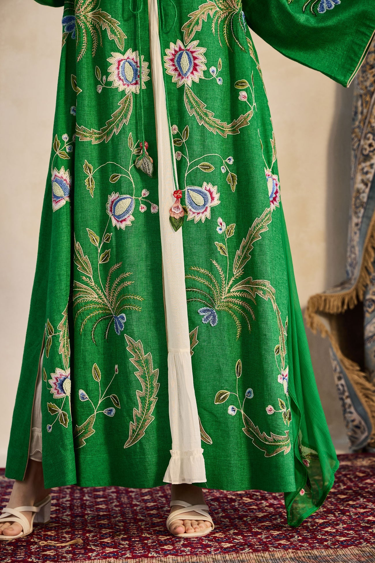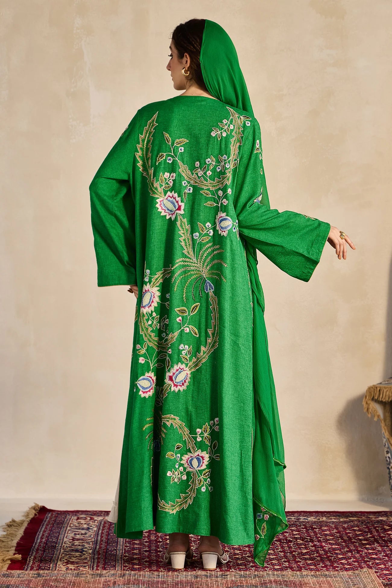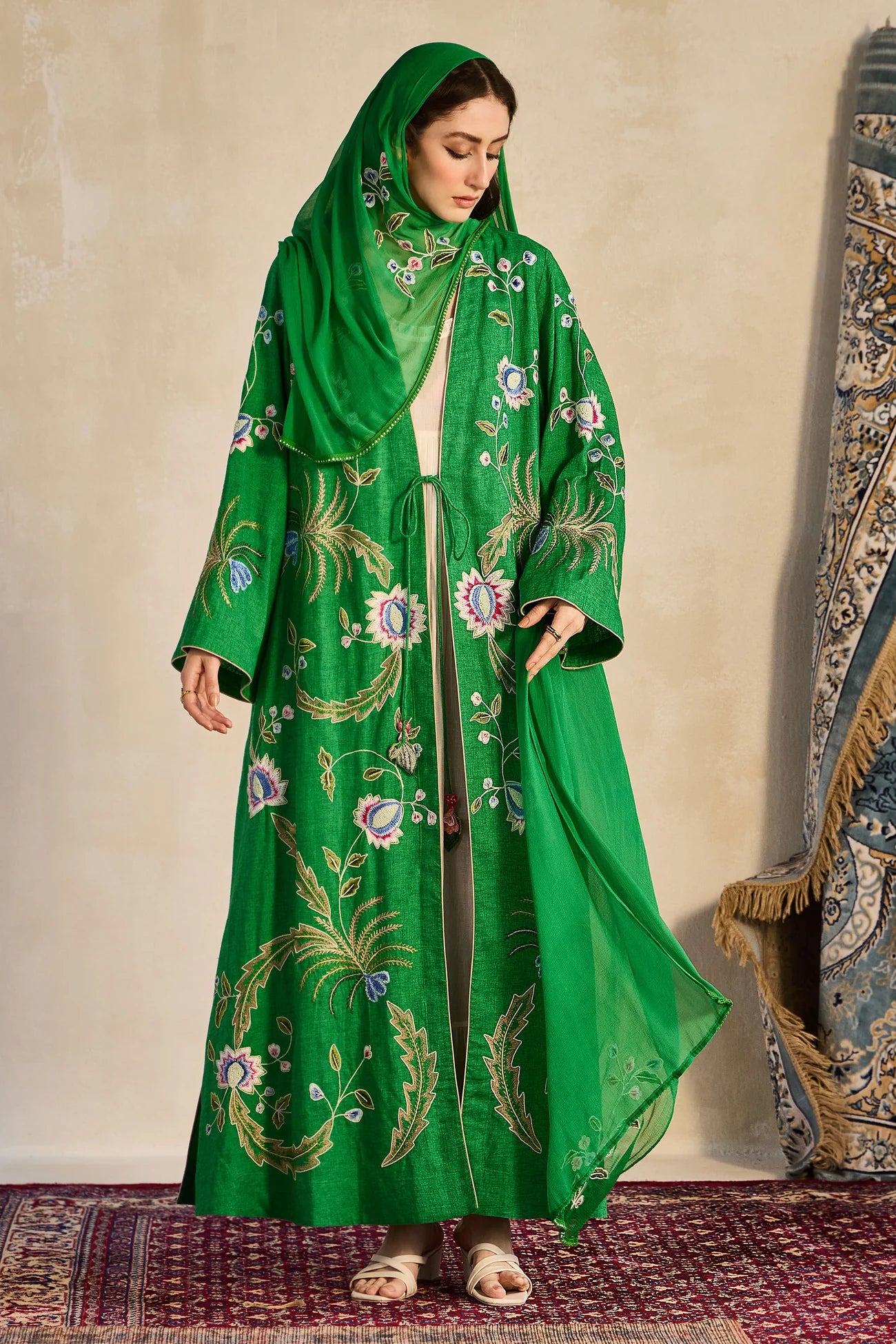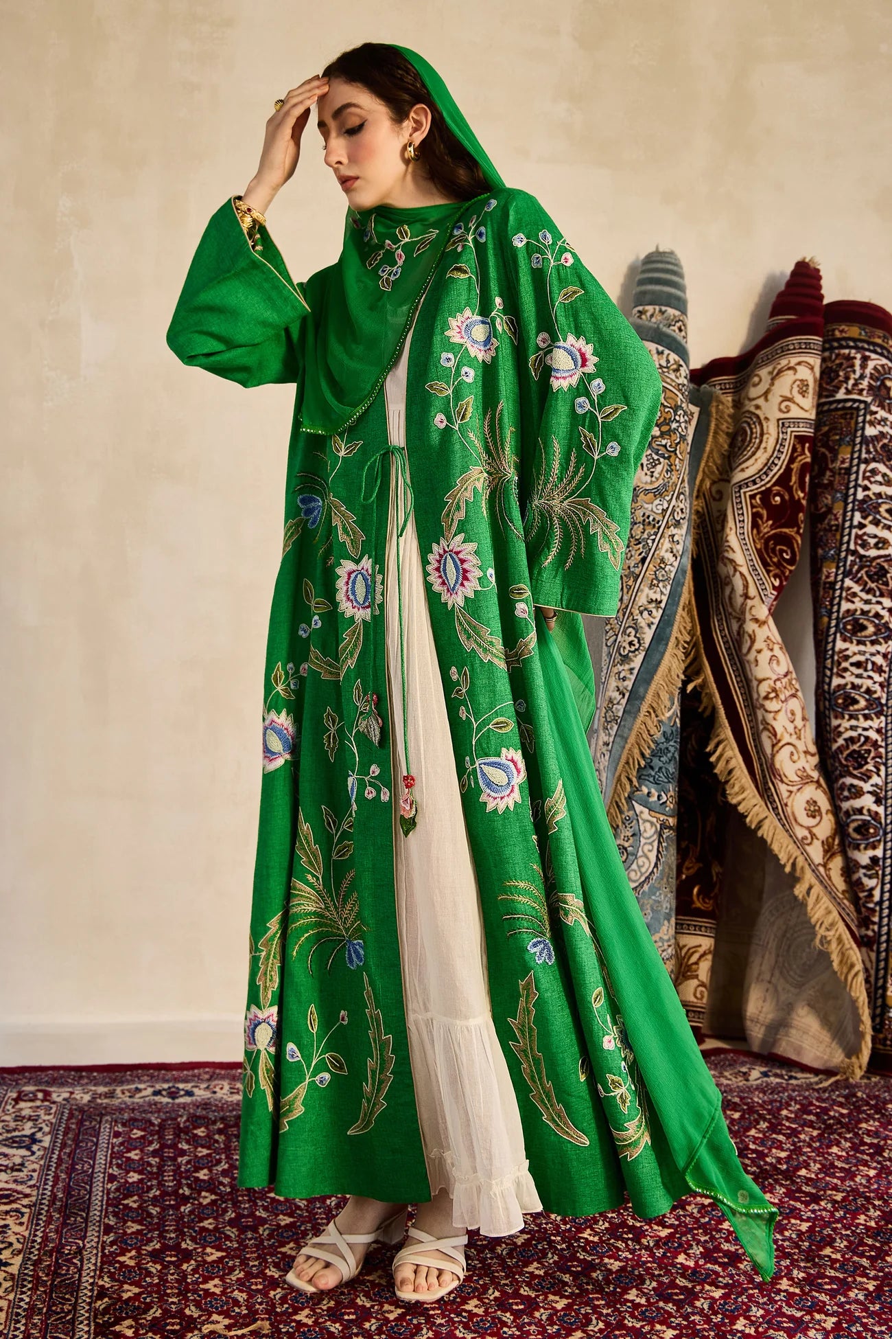 Embroidered abaya paired with a matching inner dress, creating a refined, layered look with elegant detail.