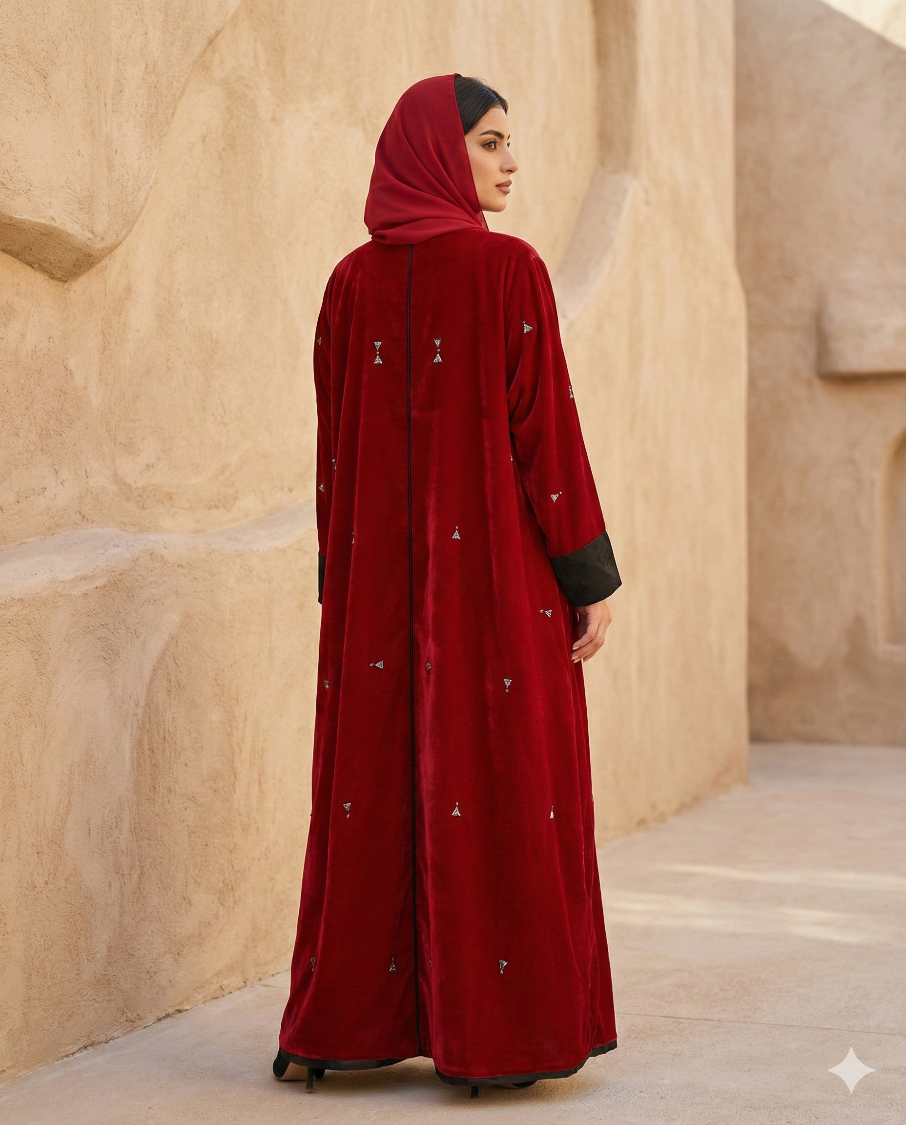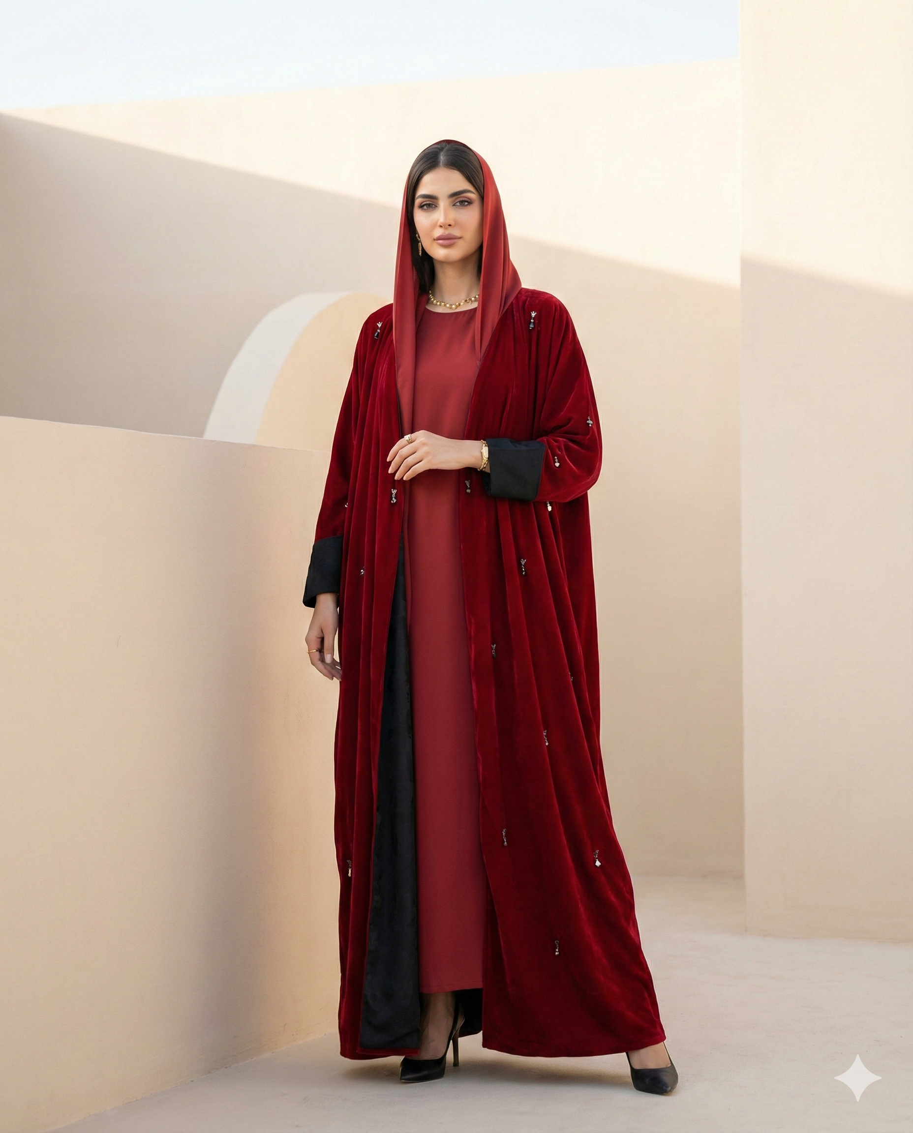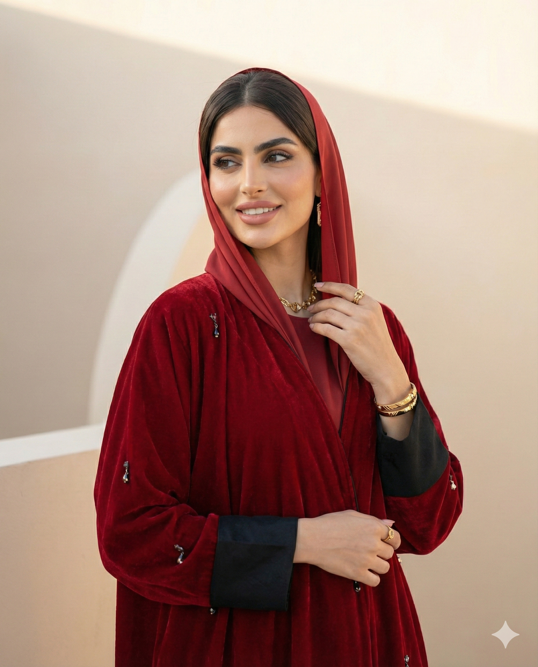 We curate contemporary abayas, kaftans, and statement pieces that blend Saudi heritage, bold color innovation, and architecture‑inspired prints with effortless holiday style.