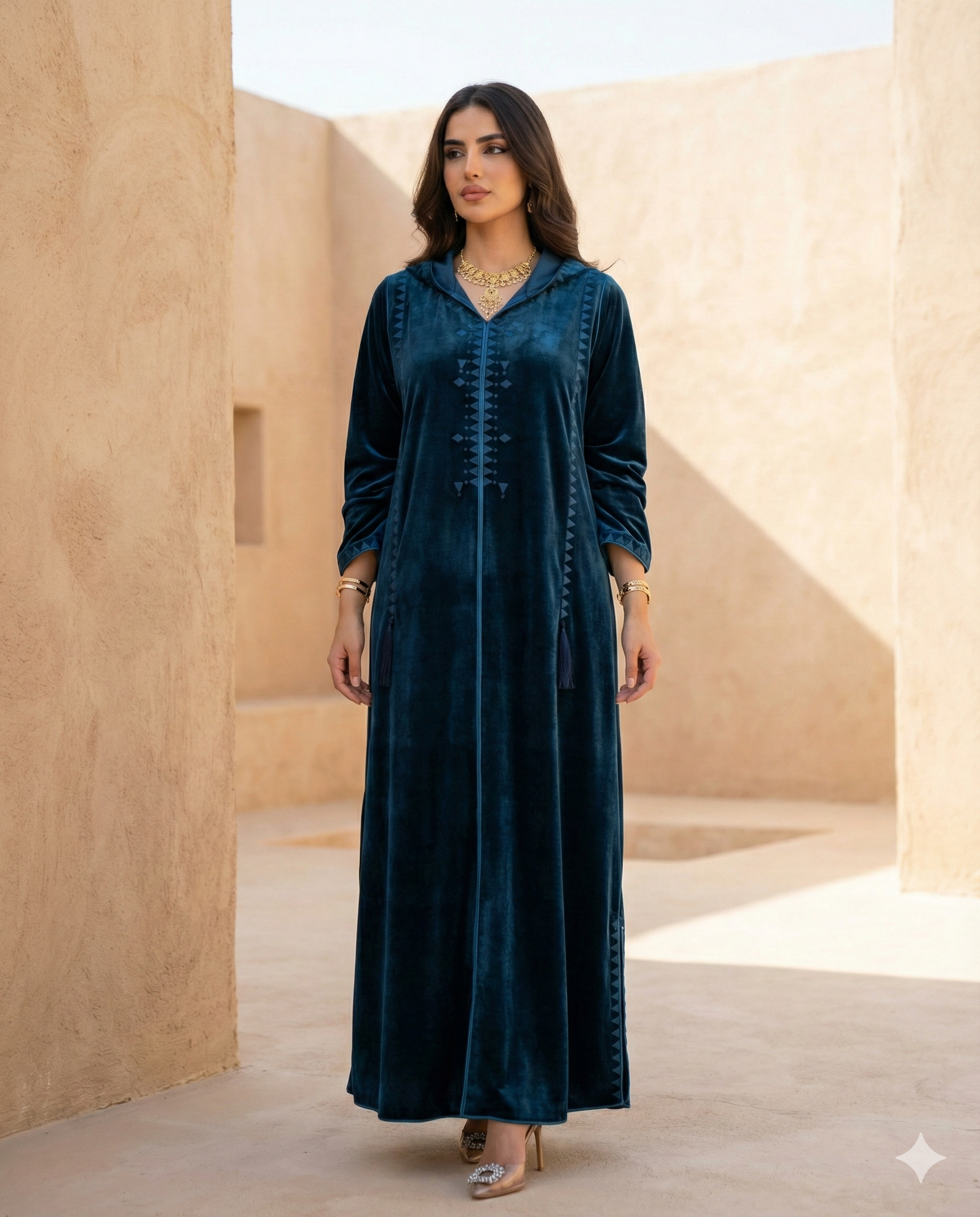 We curate contemporary abayas, kaftans, and statement pieces that blend Saudi heritage, bold color innovation, and architecture‑inspired prints with effortless holiday style.