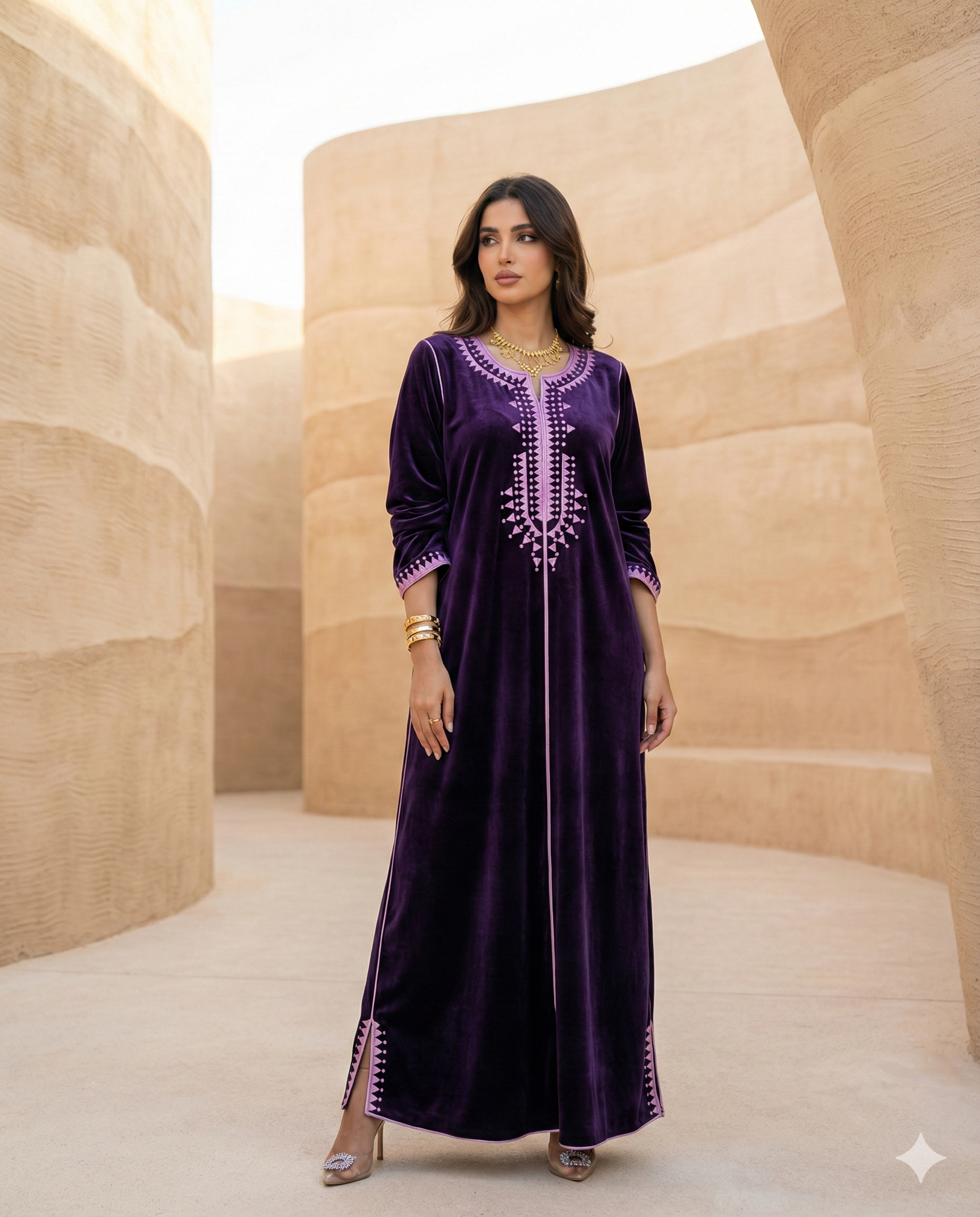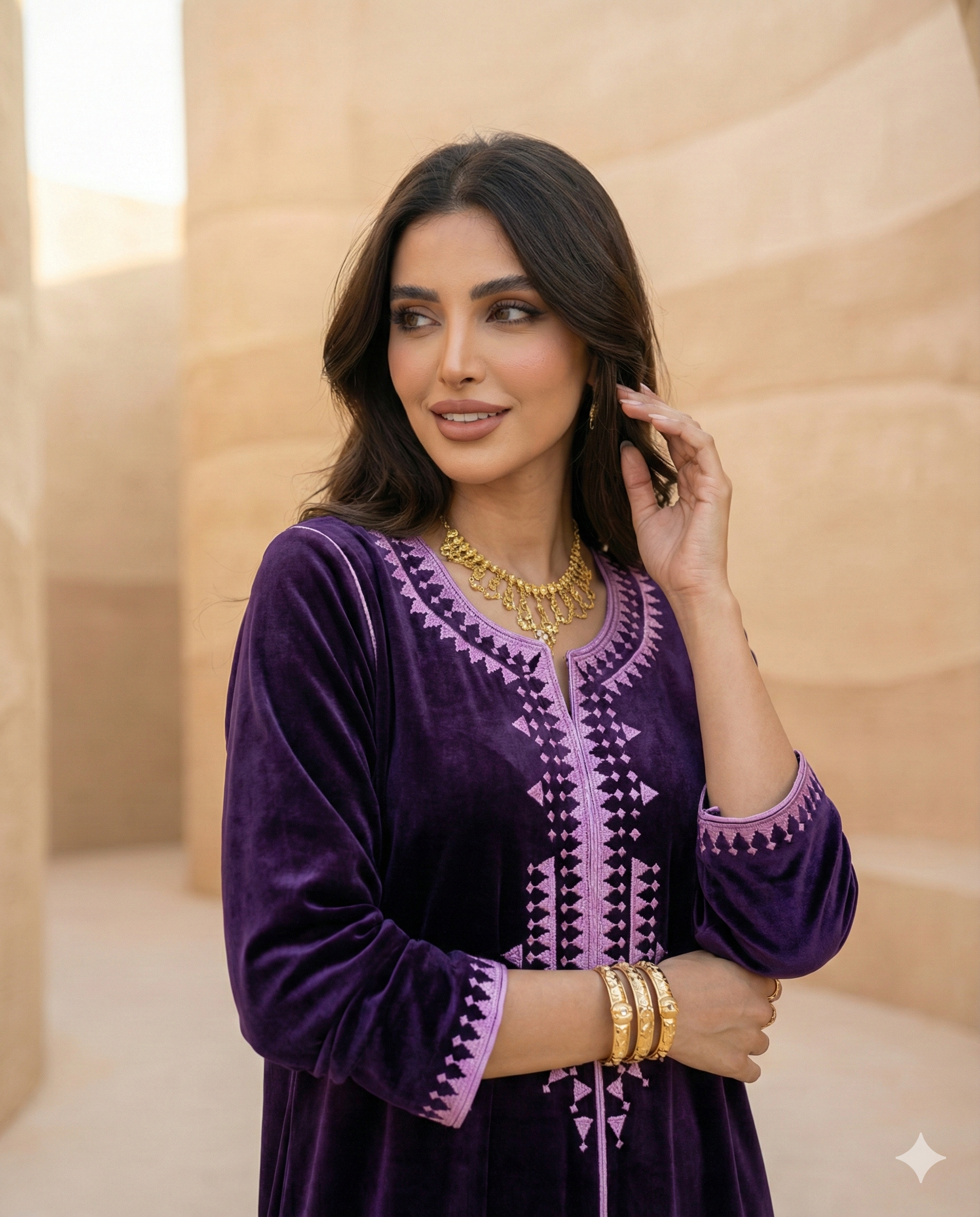 We curate contemporary abayas, kaftans, and statement pieces that blend Saudi heritage, bold color innovation, and architecture‑inspired prints with effortless holiday style.