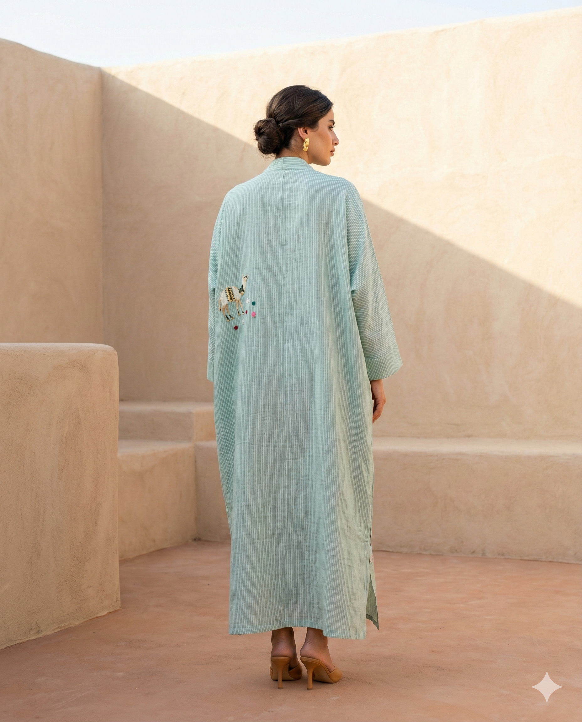 We curate contemporary abayas, kaftans, and statement pieces that blend Saudi heritage, bold color innovation, and architecture‑inspired prints with effortless holiday style.