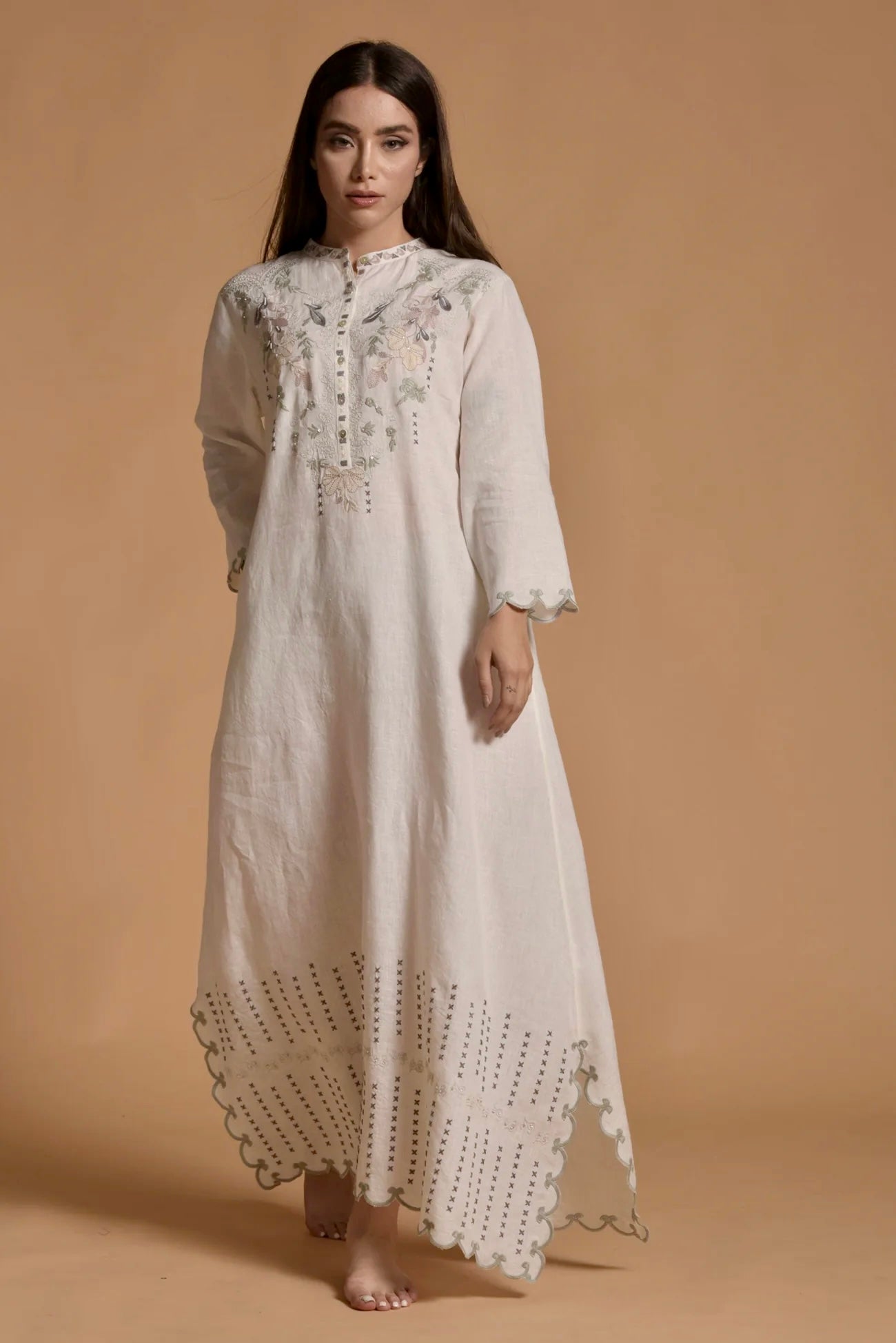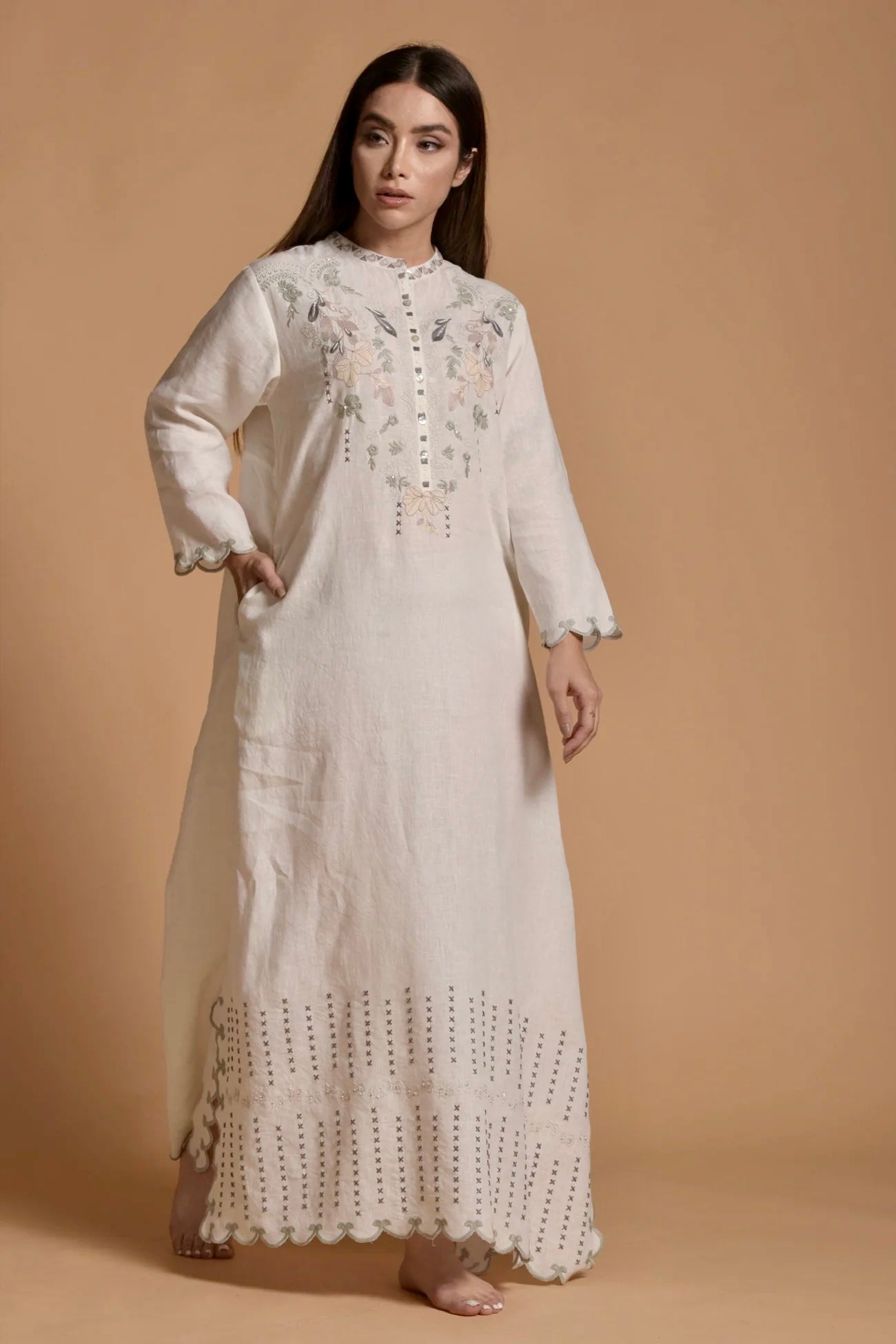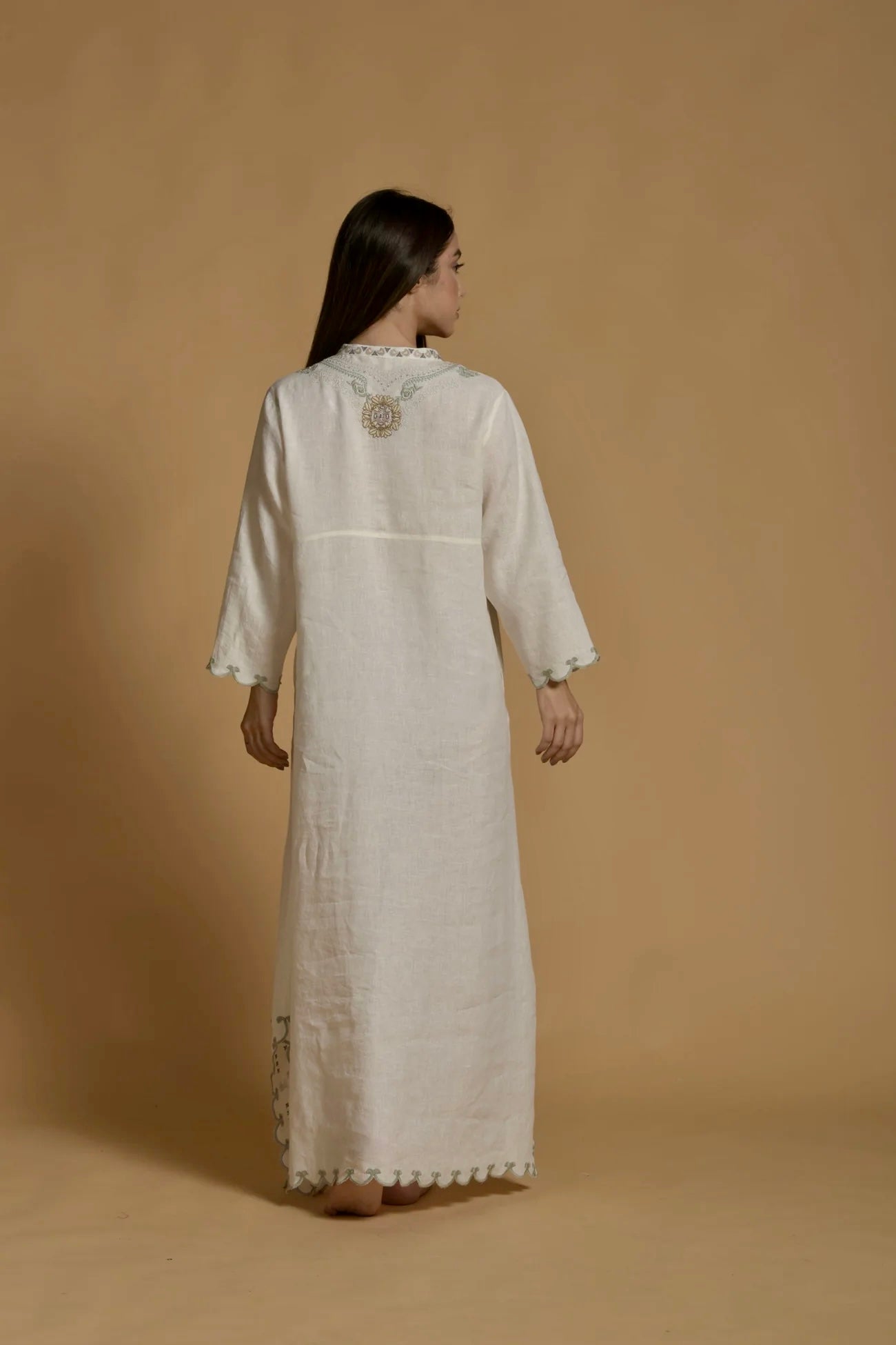 The Ashia Embellished Long Jalabiya exudes elegance with its flowing silhouette and refined detailing. Adorned with subtle embellishments, it offers a graceful, sophisticated look—perfect for special occasions or elevated evening wear.