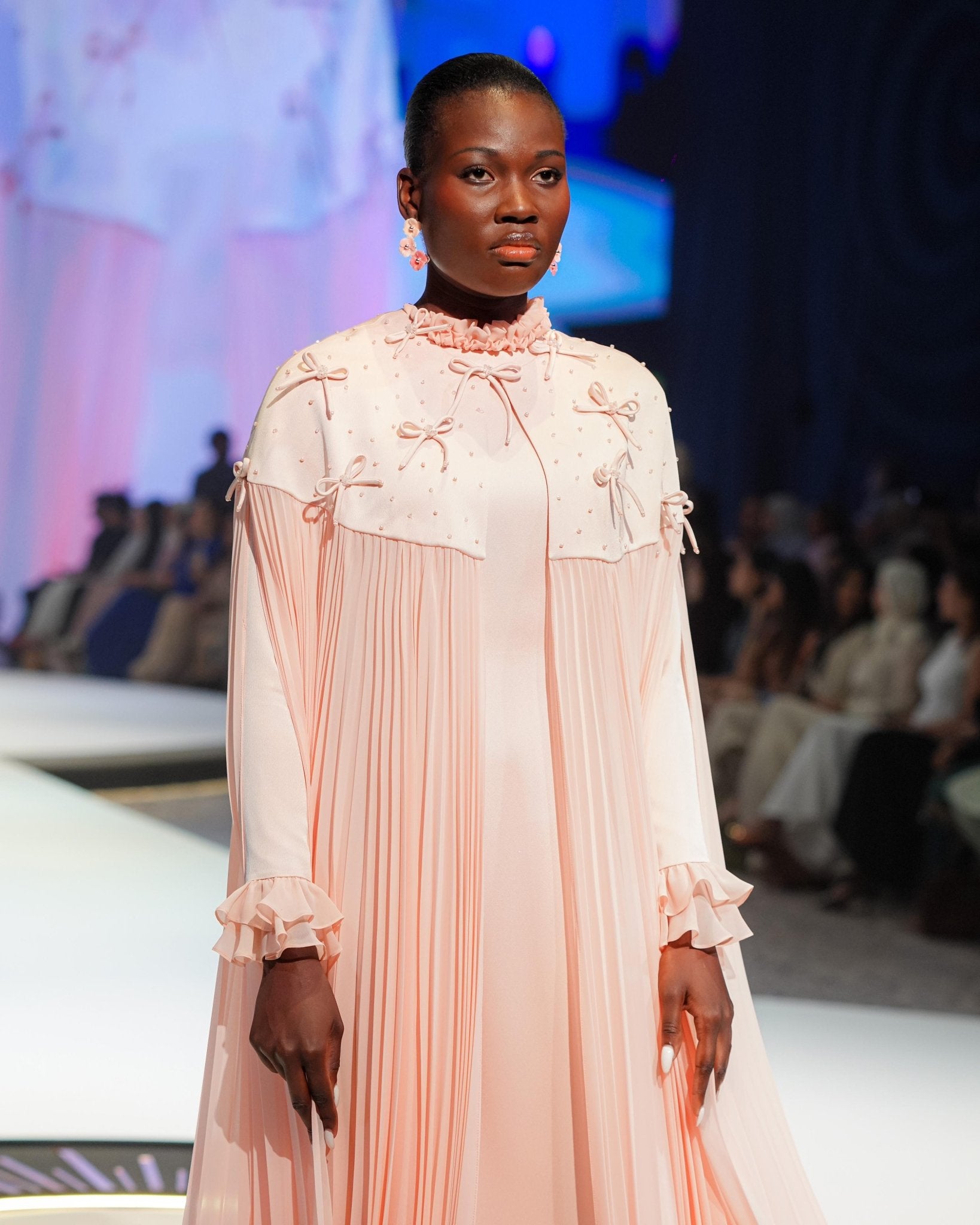 We curate contemporary abayas, kaftans, and statement pieces that blend Saudi heritage, bold color innovation, and architecture‑inspired prints with effortless holiday style.